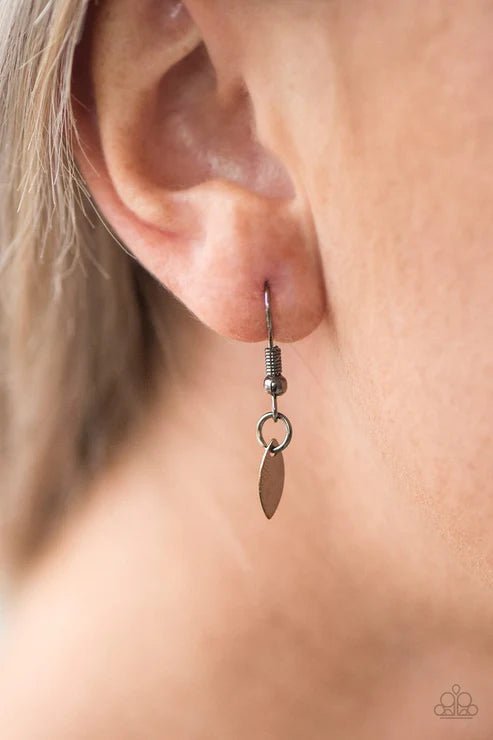 Flat gunmetal frames link together below the collar, creating a dainty chain. Brushed in a high-sheen finish, the flat gunmetal surfaces easily reflect the light creating a flashy palette from any angle. Features an adjustable clasp closure. Includes one pair of matching earrings. Sold as a set.