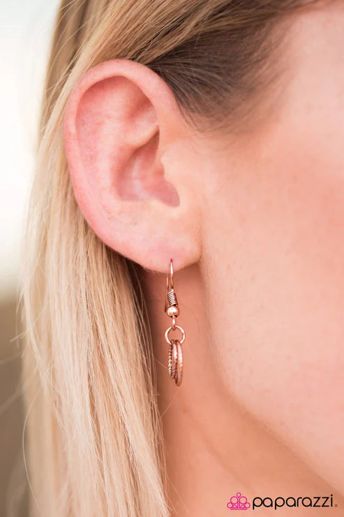 Necklace and Bracelet - Delicately etched in radiant textures, dainty copper rings join below the collar in a dizzying fashion. Features an adjustable clasp closure. Includes one pair of matching earrings. Sold as a set.
