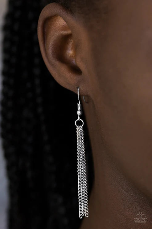 Brushed in a vivacious green finish, a bubbly silver teardrop swings from the bottom of an elongated silver chain for a tribal inspired look. Features an adjustable clasp closure.